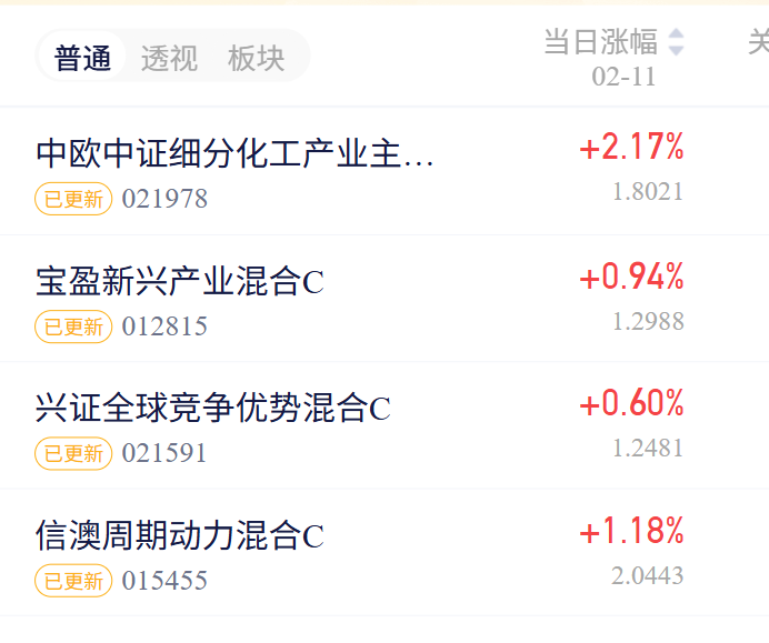 中欧中证细分化工产业C净值喜涨2.17%,化工行情持续火热!