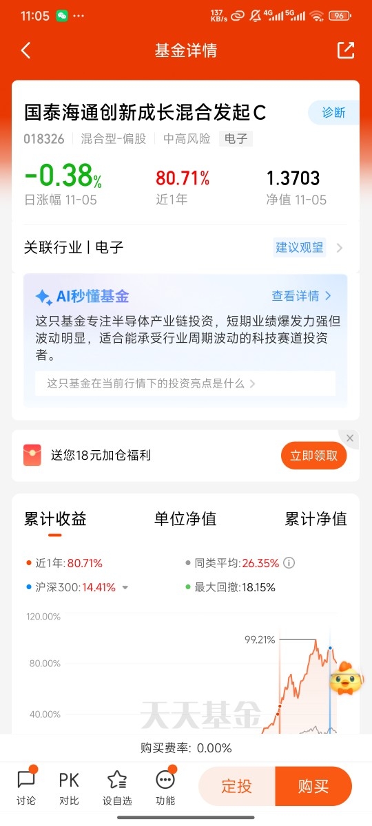 科技板块是真的牛,我盯了好几只基金表现都很顶,尤其是主投半导体的国泰海通创新成长,新基金经理上任后把控风险超给力,在管期间最大回撤才18.15%,比同类好多基金稳多了。