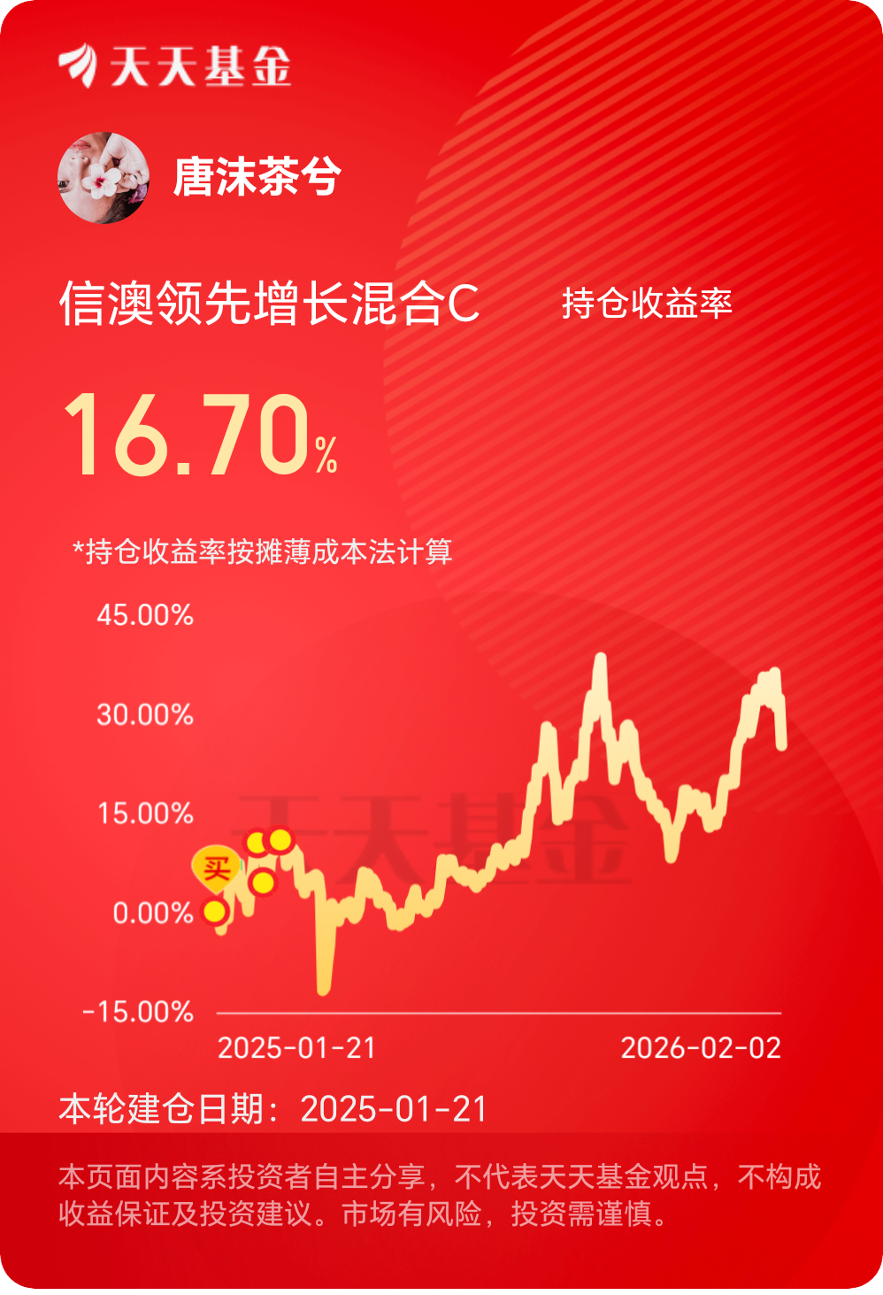 调整总算结束了,正式开始反弹,多涨点吧$信澳领先增长混合C$ #晒收益#