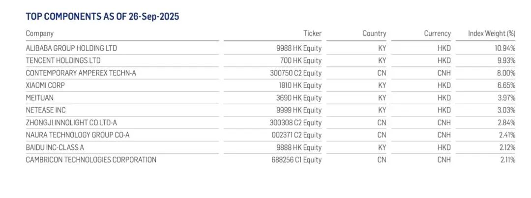 最近一只聚焦中国科技股的ETF:CNQQ于纳斯达克上市,该ETF前十大重仓股囊括了阿里巴巴、腾讯控股、小米集团、宁德时代、北方华创、寒武纪等科技股巨头。
