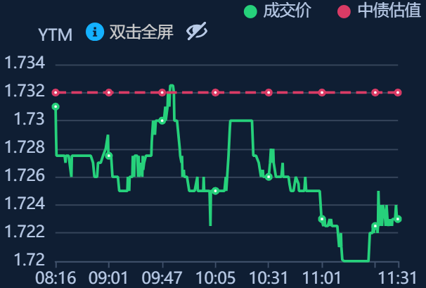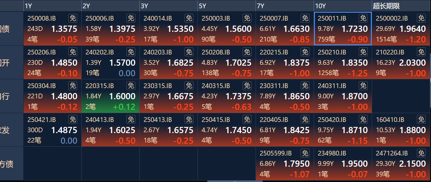 二、十年期国债收益率:1.723 -0.009%(国债收益率越涨,债市越跌,两者反向关系)