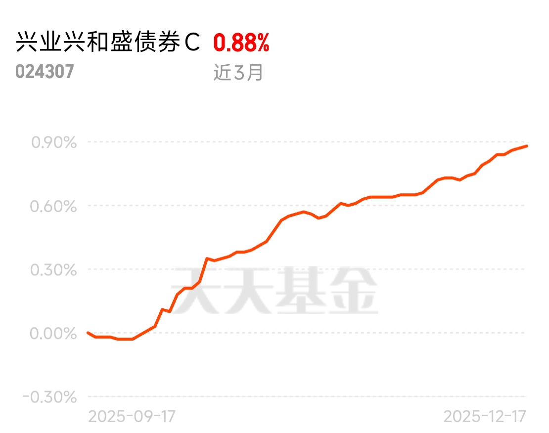 市场情绪忽高忽低,想赚钱又怕踩坑的人太多了。$兴业兴和盛债券C$ 简直是宝藏,近 3 个月 88 个蛋,天天连涨不挨打,先稳扎稳打积累收益,这波操作不亏!