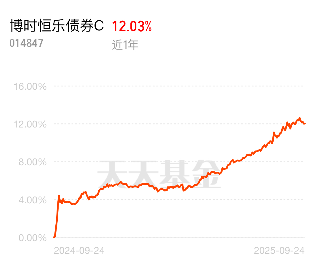 $博时恒乐债券C$ 是真的稳,昨天市场调整,它守住了安全色,净值稳稳的站住了。它半年就上涨了6.33%,一年下来累计收益已稳稳超过了12%,长跑成绩相当亮眼。这基的灵活策略在震荡行情里太占优势了,最近债市跌是因为大家怕赎回新规收0.5%手续费,提前赎债基,导致基金被动卖债砸盘。但这只类本身就是对短期持有十分友好,赎回压力小,基金经理不用被迫卖债,反而能趁机捡便宜券。加上持仓以中短久期债券为主,流动性好,就算要调仓也不会吃啥亏。其权益仓更是“精准打击”,完全不浪费利好。美联储降息后,人民币升值吸引外资买A股,它立马加仓了科技成长股,其中宁德时代单季度大涨,直接给收益加了餐。知道现在政策侧重结构性发力,又配置了沾光 “以旧换新”的消费电子标的。现在机构都看好四季度,债市和股市都有机会,这只没有申购费,持有超过7天还免赎回费,成本低、调仓快,刚好能跟着吃肉。#半导体设备股狂飙 推动因素是什么准?#