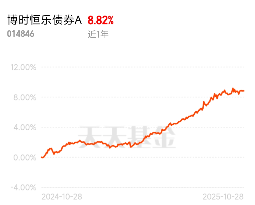 最近市场反复,固收+收益优势凸显,债券打底稳,股票部分还能博点收益。拿$博时恒乐债券A$ 来看,它近三个月涨了将近3%,一年拿下了8.82%的收益。近期央行呵护流动性,三季度以来资金利率一直维持低位,10月底又加量续作MLF,明显在维持宽松格局。这只基金的债券占比高达80%,而且以高等级信用债为主,流动性宽松意味着债券交易活跃,基金经理能轻松调整持仓久期赚价差。再加上国务院的化债政策,融资平台债务风险缓释后,它持仓的城投债估值更稳了,票息收益有了保障。再看这只基金的权益仓,其贡献更是超出预期,其20%左右的资产在权益类,而且选股思路特别清晰,既有AI应用、固态电池这些“十五五”规划相关的高景气科技股,又有消费、医药这些防御性板块。三季度科技股大涨的时候,它跟着赚了一波;最近市场震荡,防御性板块又扛住了压力。更聪明的是,它还投了些权益类基金,分散了个股风险,就算单只股票跌了,其他的收益也能补回来。这“长债稳收益+权益抓主线”的模式,长期拿着既稳又盈!#科技热点摊开业啦#