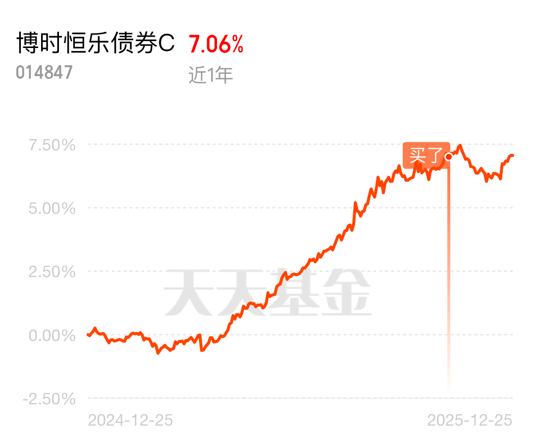 $博时恒乐债券C$ 是真稳啊!债市调整,稳稳守住了安全色,六个月时间涨幅超过了4.5%,这业绩没得说。最近还主动把限购门槛从500万降到了100万,感觉经理挺负责,不是那种只顾冲规模的,让人安心。目前境外机构加仓中国债市,而且参与便利化提升,12月19日沪深交易所支持境外机构开展债券回购业务,这就提升了外资配置中国债市的灵活性。这基持仓的高等级信用债和利率债,正是外资偏好的品种,外资持续加仓会进一步提升这些债券的流动性和价格,直接利好基金净值。另外,中央政治局会议和中央经济工作会议都定调货币政策适度宽松,不搞大规模刺激,这种宏观环境对债市特别友好,债券收益有了坚实的政策支撑。而且其权益仓也精准踩中了近期的半导体行情,12月以来,半导体产业链持续大涨,立昂微涨停,艾森股份、上海新阳涨逾10%,而且随着国产替代加速和AI算力需求爆发,半导体板块的长期行情值得期待。除此之外,它还配置了消费电子板块的龙头个股,受益于消费温和复苏的政策导向,进一步增强了权益仓的收益弹性。#商业航天赛道爆火:2026年行业或迎质变#