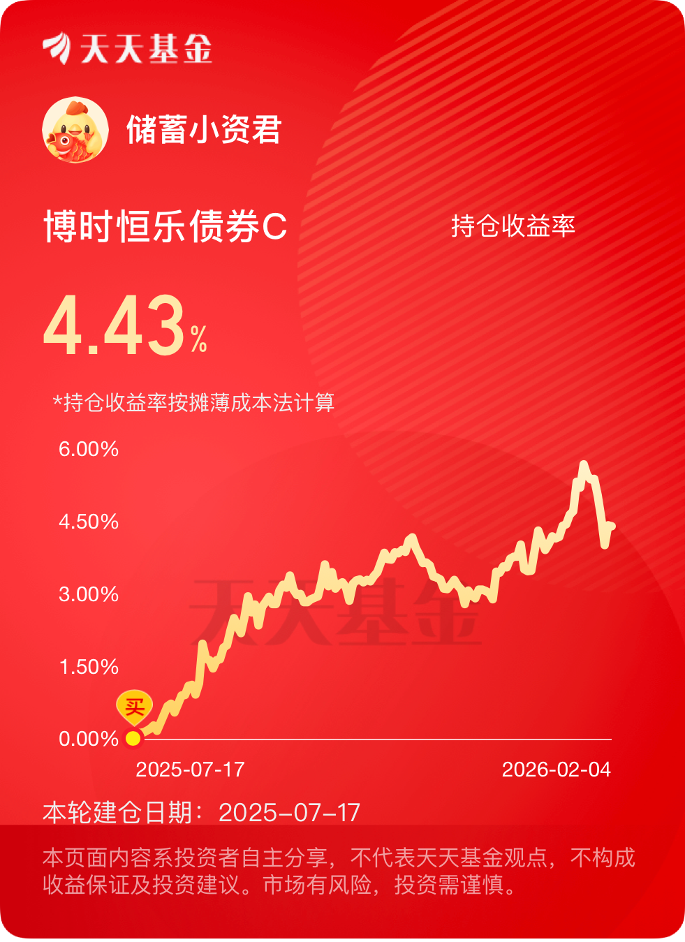 投资求稳也求盈,市场不确定性增加的行情下,低波固收+是个不错的选择。$博时恒乐债券C$ 债券提供稳定现金流,股票增强长期回报潜力,近半年3.6%+的收益,曲线平滑向上,收益稳又多。最近央行开展了8000亿元3个月期买断式逆回购,这波操作直接给债市注入了强心剂。这次买断式逆回购,对冲到期的7000亿元,净投放1000亿元,这是近四个月首次加量续作。这波操作直接压低了中短端收益率,缓解了机构的中长期资金成本,这基的债券部分主要配置的是中短久期的利率债和高评级信用债,流动性宽松背景下,这些债券的收益会稳步提升。而且这只基的风险控制能力超牛,通过分散化持仓和久期管理,把波动控制在同业领先水平,最近一年的波动很小,不管市场怎么变,收益都很稳。且它的权益仓位也相当能打,前十大持仓里有中国太保、华泰证券这些金融股,还有藏格矿业、盐湖股份这些盐湖提锂板块的龙头股。最近保险板块迎来了估值修复,2025年保险行业的寿险、财险业务都实现了稳步复苏,新单保费收入持续增长,代理人队伍质量不断提升,基本面持续改善,中国太保,最近表现很亮眼。还有藏格矿业和盐湖股份,作为盐湖提锂板块的龙头,受益于新能源汽车行业的快速发展,锂价稳步上涨,公司业绩持续改善,最近股价也是震荡上行。这基精准布局,未来潜力不小。#2月基金投资策略#