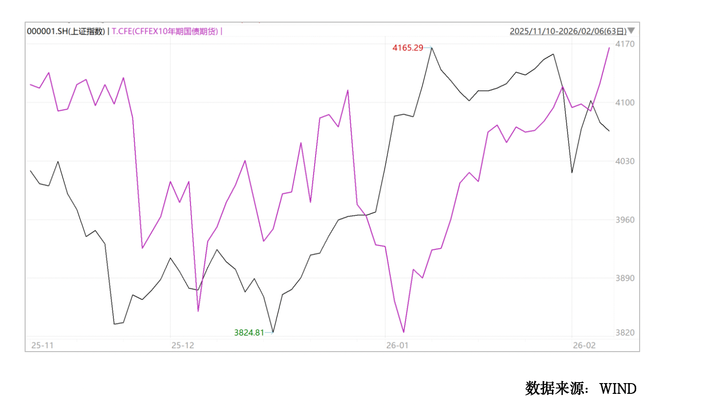 上周商品期货价格剧烈震荡,尤其是银价自高点出现最大回撤40%左右,其博弈氛围浓烈,止盈带动的避险情绪随之蔓延至权益市场,周一上证指数大跌后周内逐渐企稳。风险偏好的快速扭转带动了资金涌入债市进行避险,上周10年期国债活跃券再次试探1.8%的近期低位,其近一个月来自高点已下行10BP左右,总体走势较为稳健。考虑到10年逼近整数点位关口,且在当前位置基本站稳,周内资金开始明显追逐行情节奏稍显滞后的超长端30年国债,从而带动其周内下行3BP。往后看,考虑到大宗、权益市场点位短期内仍位于震荡区间,风险偏好的切换或仍将演绎,成为配置盘稳步入场债市的窗口期,短期内总体利好债市行情。