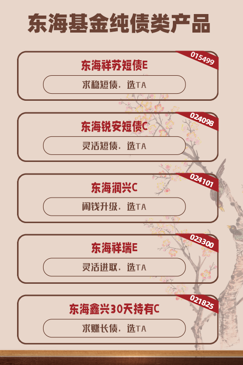 $东海祥苏短债E(OTCFUND|015499)$$东海锐安短债债券型发起式C(OTCFUND|024098)$$东海润兴债券C(OTCFUND|024101)$$东海祥瑞C(OTCFUND|002382)$$东海鑫兴30天持有债券C(OTCFUND|021825)$