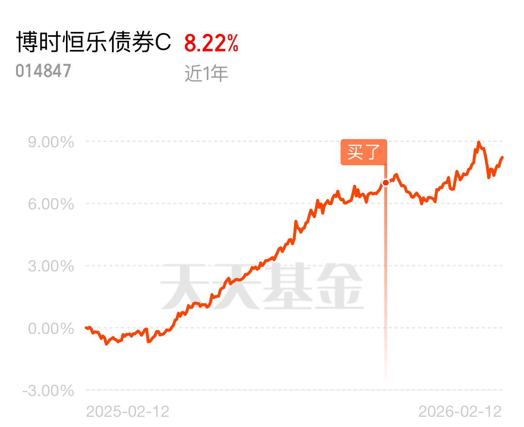 债市这阵子行情不错,$博时恒乐债券C$ 算是赶上了,权益配置也跟对了方向。最近几天连着收蛋,一周攒蛋80多,一年下来累计收蛋820多了,成绩相当漂亮。最近债市利好消息不少,直接给债市注入了强心剂。一个是境外机构免税政策延续,财政部和税务总局公告,2026年到2027年,境外机构投资境内债券市场的利息收入,暂免征收企业所得税和增值税,这意味着会有更多外资来买咱的债券,扩大债市资金来源,债券价格自然会稳中有升,这基的债券部分收益也更有保障。二是香港人民币国债海外发行火爆,2月11号财政部在香港发行了140亿元人民币国债,认购倍数高达3.94倍,这说明海外投资者对人民币债券的信心特别足,也从侧面反映出咱们债市的吸引力越来越强,外资持续流入,不仅能稳定债市,还能带动整个固收市场的情绪,这基作为优质债券基金,自然能受益良多。而且它的权益仓也很给力,布局了低估值的金融板块,中国平安作为保险龙头,最近估值一直在修复,1月银保渠道新单增长27.6%,业绩回暖迹象明显,而且它的市盈率才6.8,估值偏低,长期来看有很大的修复空间。现在市场情绪回暖,保险板块作为防御性板块,既能抗跌,又能在市场上涨时跟着补涨,简直是权益仓的压舱石。#2月基金投资策略#