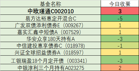债市难得的艳阳天,今天股债跷跷板又向债市倾斜了,手里的 $中欧瑾通灵活配置混合C$ 收3个蛋,华安众享180天持有A破了3个蛋,中银淳利三个月持有A收了2个蛋.今天股市又调整了,但中欧瑾通灵活配置混合C(002010) 只微微波动,近一年7.51%的收益还是稳稳跑赢同类平均。这种“固收+”就是省心,不用天天盯盘。#2025超额关键词#