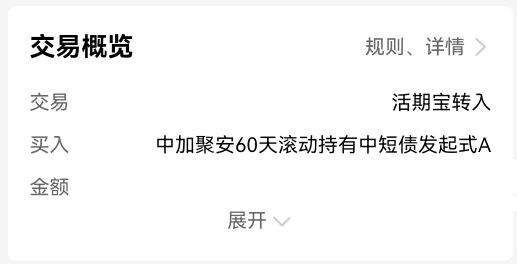 买债就是图个安心稳健,$中加聚安60天滚动持有中短债发起式A$ 六个月就收蛋197个,持有感觉良好,也不用天天看挺省心的!关键是费率还特别低,再加仓一些