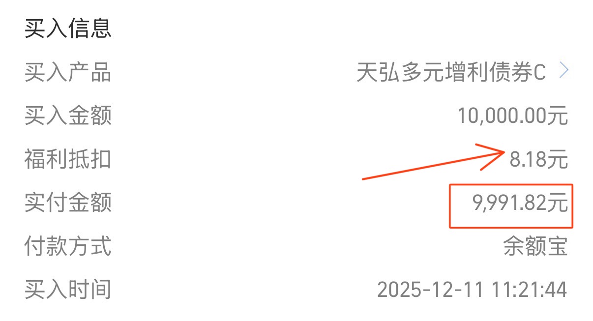 $天弘多元增利债券C$建仓10000元。