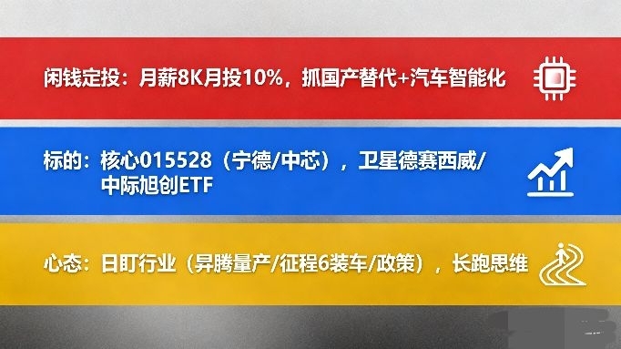 - 卫星资产:个人关注智能驾驶域控制器(德赛西威)、高速光模块(中际旭创)等细分领域ETF。