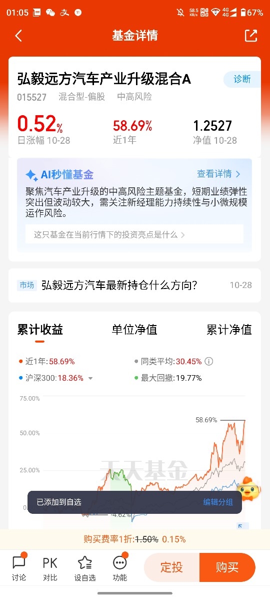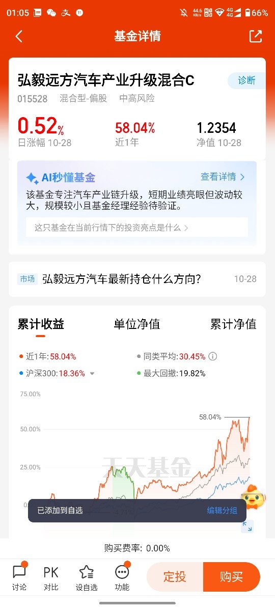 我的投资策略是“长期持有+定投补仓”。国产算力链虽前景广阔,但短期波动难免,比如板块估值阶段性抬升时可能出现回调。通过每月固定定投弘毅远方汽车产业升级混合C,既能摊薄成本,又能避免因择时失误错过行情。就像9月板块回调时,定投买入的份额在10月政策利好落地后已实现不错浮盈,这种方式能让投资者更从容地把握产业趋势。