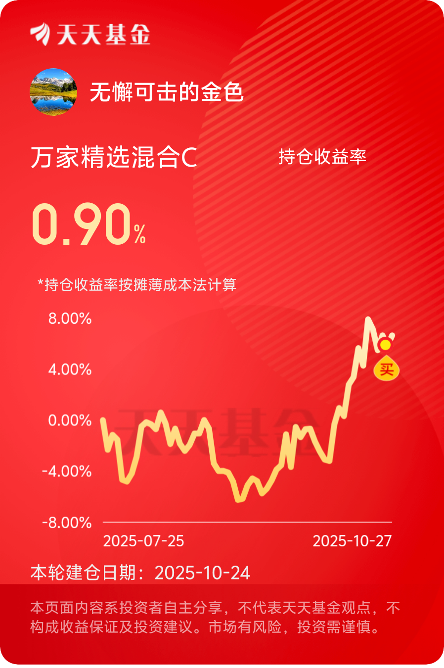 临近冬季,煤炭等板块的机会还是相当不错的,现在更应抓住机会。$万家精选混合C$ #晒收益#