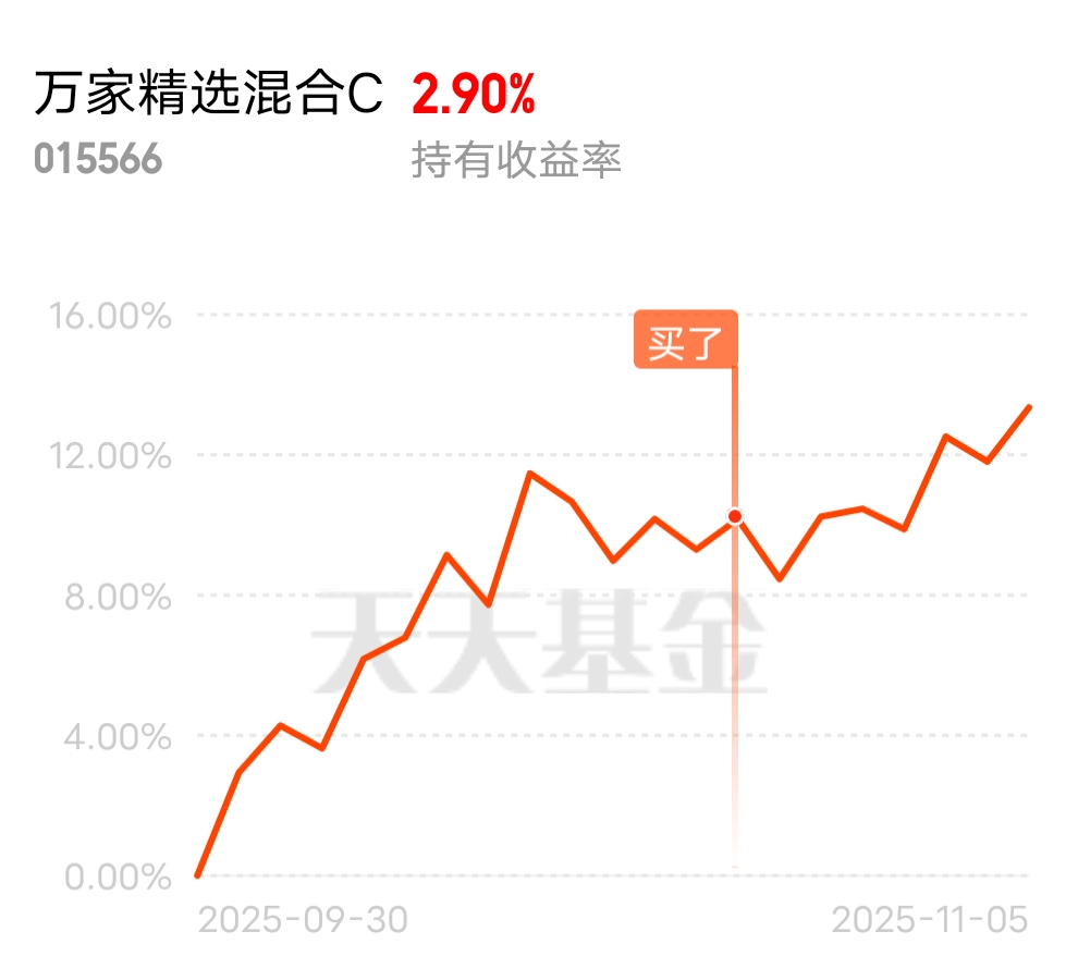 临近年底,整个周期板块,特别是煤炭表现还是相当不错的,更应该积极抓住。$万家精选混合C$