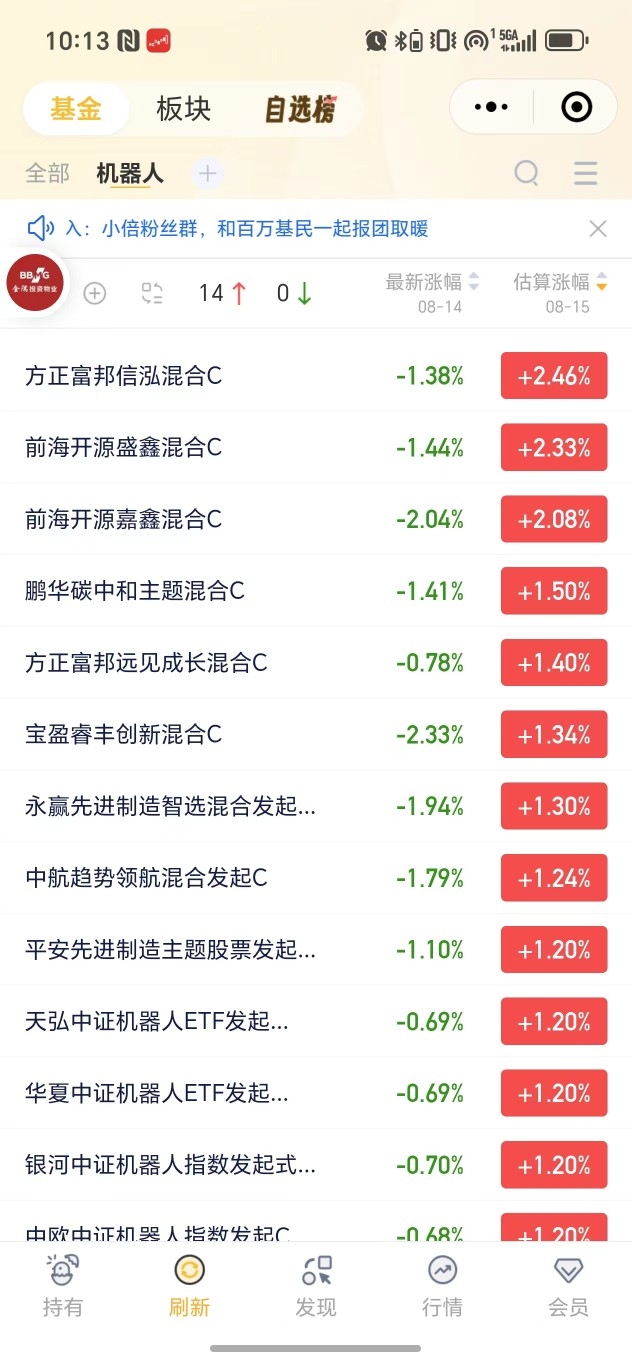 方正富邦信泓C现在估值上涨2.46%真不错了啊,$国泰金马稳健混合C$目前 估值上涨1.14%也还行吧#八月基金投资策略#