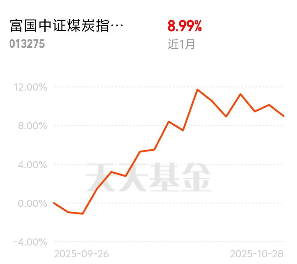 手里有国泰国证有色金属行业C,顺手配了点$富国中证煤炭指数(LOF)C$ 都是资源线,一个挖矿一个烧煤,这波顺周期回暖它俩都吃上了!近1个月涨9%,跑赢一堆同类,前十大全是陕煤、神华这些硬核选手,跟踪误差还特别小,0.45%几乎贴着指数走,省心!