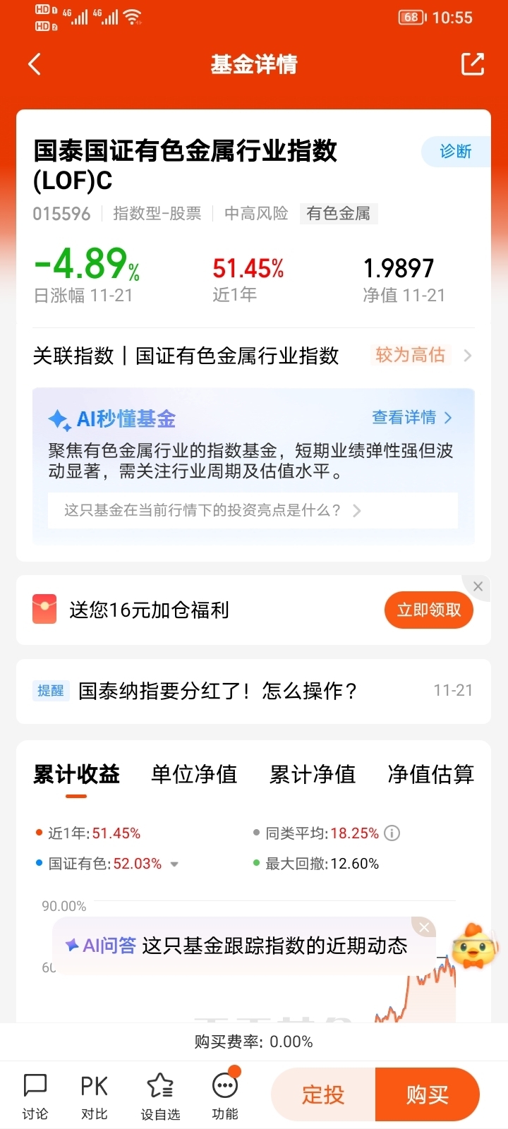 我依然看好有色金属板块的行情,现在适合布局有色金属周期板块。看好$国泰国证有色金