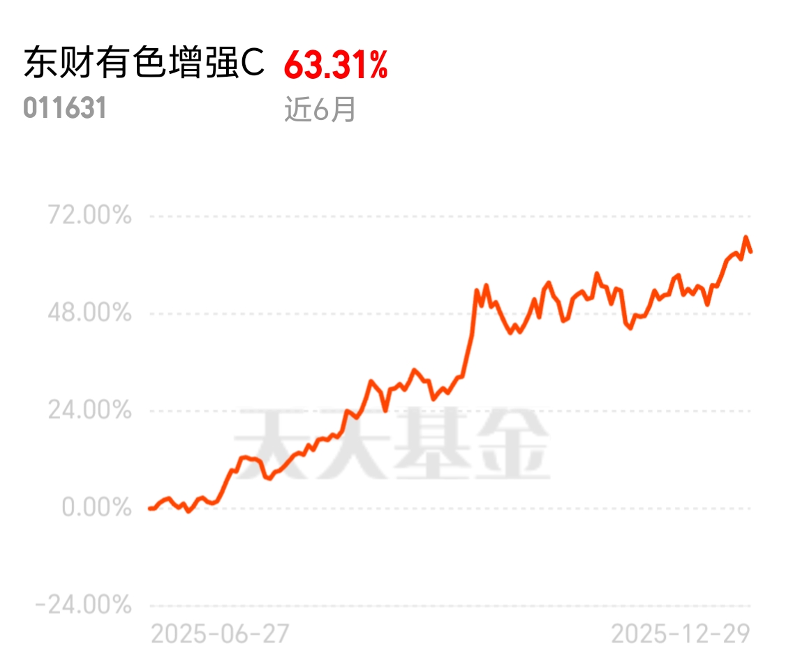 全球降息预期越来越强,有色金属作为硬资产吸引力大增,价格持续走强。东财有色增强 C 近 6 月 63.31% 的成绩看得见,把握周期机会,让资产跟着行业涨。