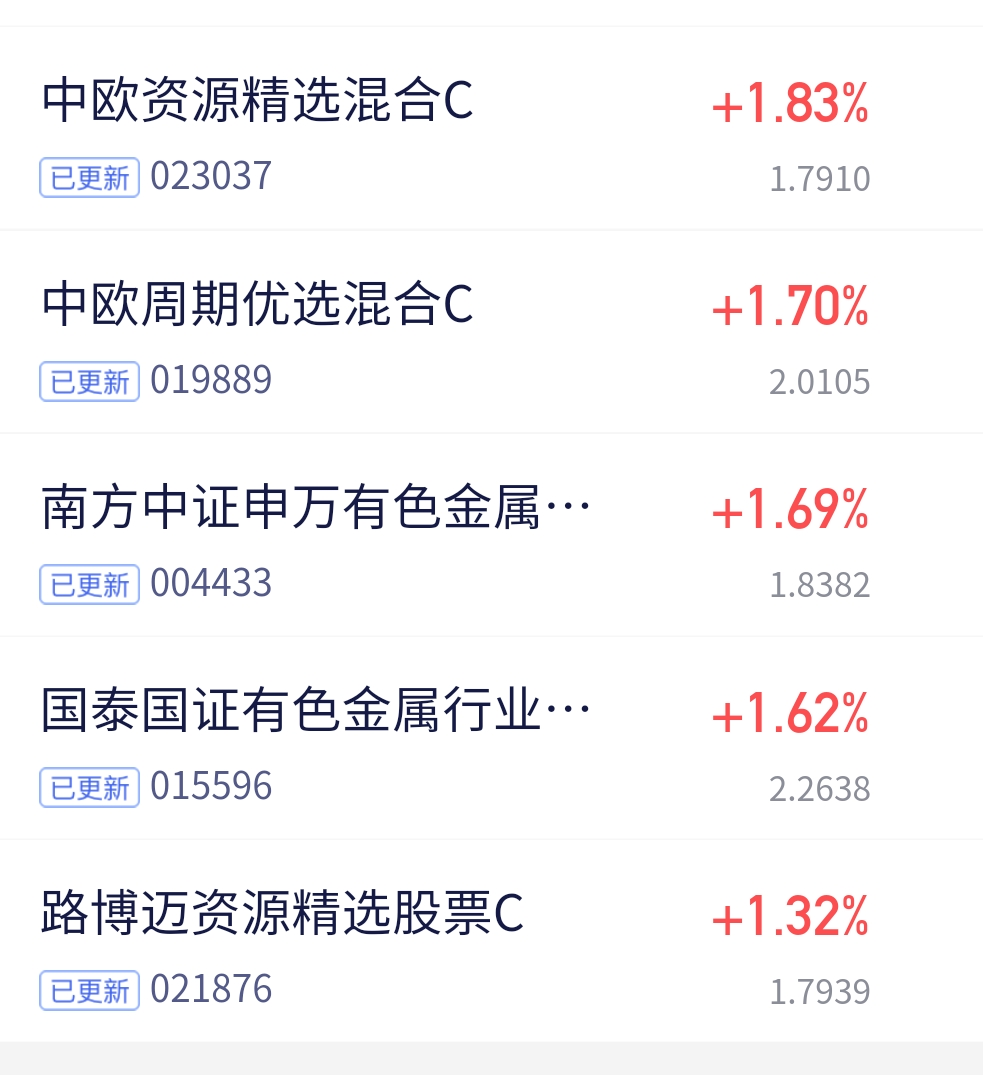 $南方中证申万有色金属ETF发起联接C$ 涨幅1.69%