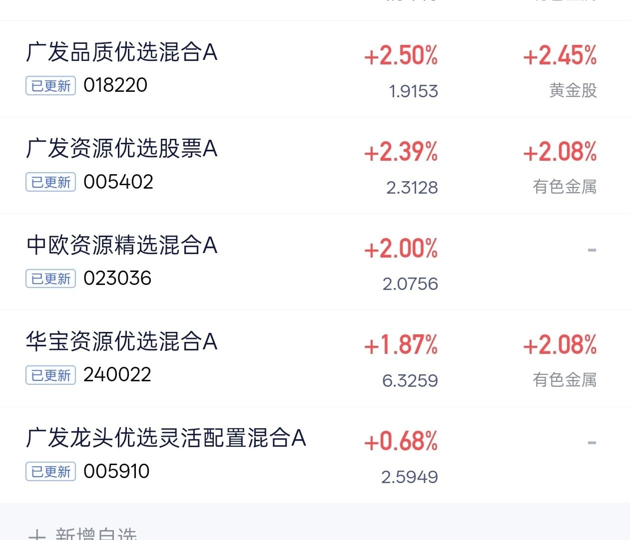 有色板块是今年主线之一,国泰国证有色金属行业指数(LOF)C打包紫金、北方稀土、洛阳钼业这些行业龙头,覆盖全产业链,把握“新旧动能转换”下的资源大周期,还有一只我也从去年就持续关注的广发品质优选混合发起式C,涨幅还是要更好一些,,背后是全球资源稀缺+铜被纳入战略储备的大趋势,业绩和故事性兼备。看好周期成长股,用这只基金做核心配置很踏实,涨得明白,拿得安心$广发品质优选混合发起式C$