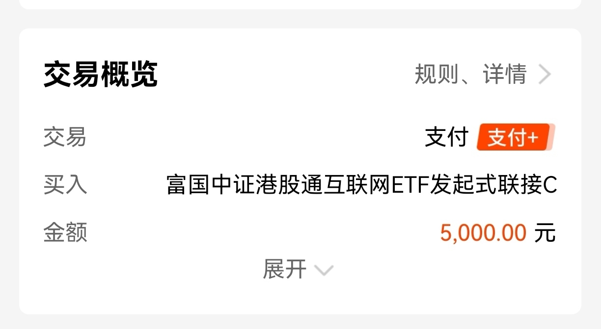 现在趁回调继续加5000元$富国中证港股通互联网ETF发起式联接C$ 位置还是比较低的,由AI带动的港股科技行情不会这么快结束,这个不限购又是指数,不会偏移主线行情,可以持续看涨。