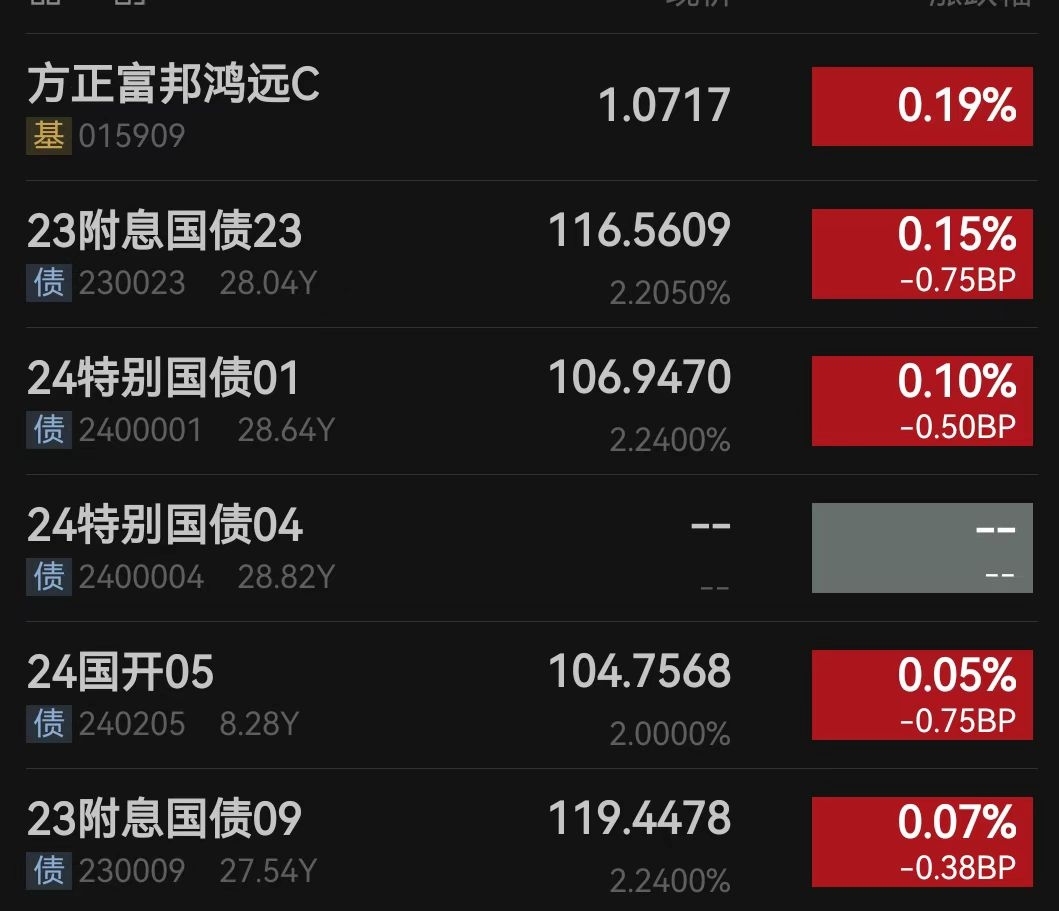 混债继续碎蛋!现在是债强股弱了。从盘面上看长久期利率债领涨,10年红0.3BP,