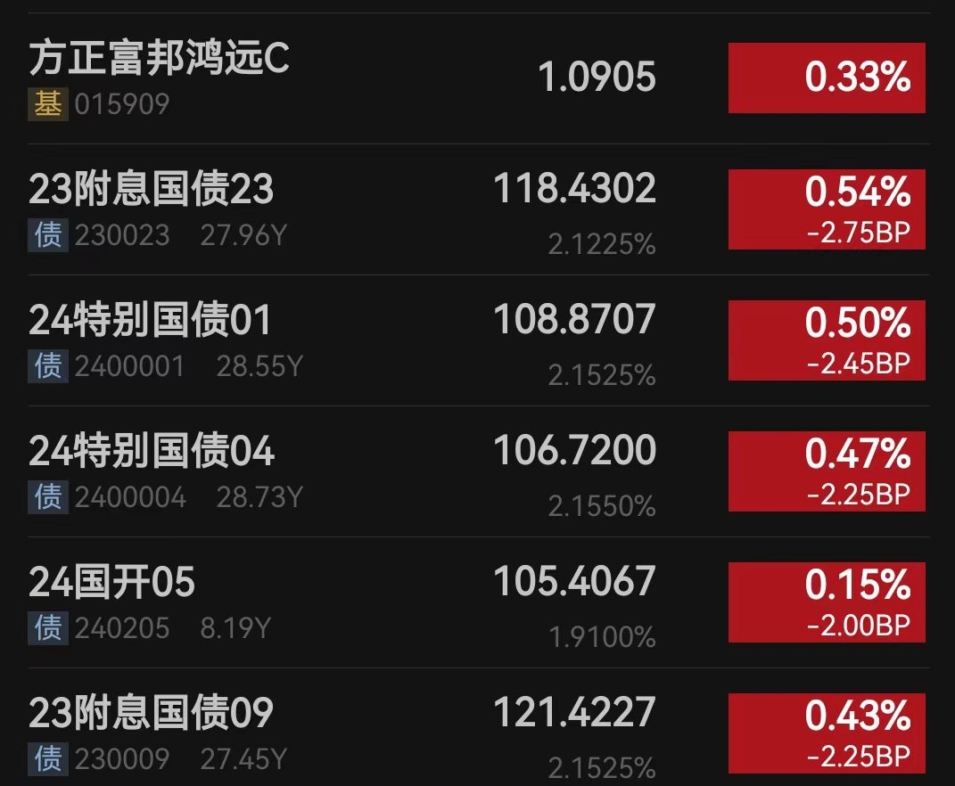今天债市就一个颜色,就是红!哈哈哈哈,太爽了!昨天超长收蛋就不小,今天还是大肉啊