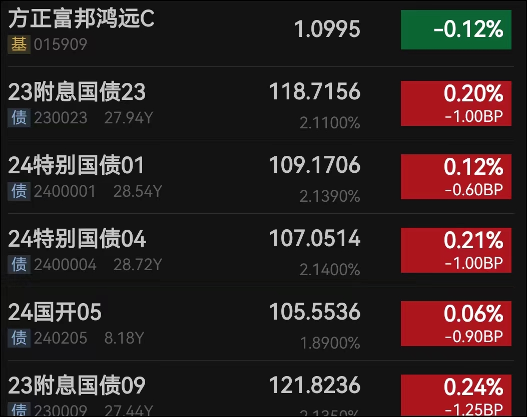 债市!大涨!外围跌疯了!债市已经成避风港了!超长涨幅1.3bp,希望今天吃大肉啦!中长期也还不错,涨幅0.8bp!信用债今天一片红,可以收蛋了。热门产品收蛋情况: $方正富邦鸿远债券C$ 预估28-34蛋,久期比较高,今天债市回暖应该也不会让我失望。 永赢的话:预估25-30蛋,弹性没有方正好,最近都跑输方正。7-10年:8-10蛋; 0-5年:1-3蛋,短端还是受制久期,再涨回暖的话也跑不赢长端利率债,有点可惜。目前看股市的情况的话平安今天大概率碎10个蛋以上。我觉得经过之前调整加上资金面宽松延续下回暖行情可期啊!