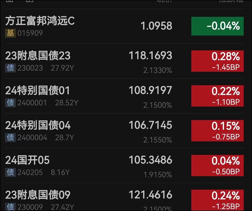 按照目前的水平股债要双收了!从盘面上看长久期利率债领涨,10年红0.3BP,超长