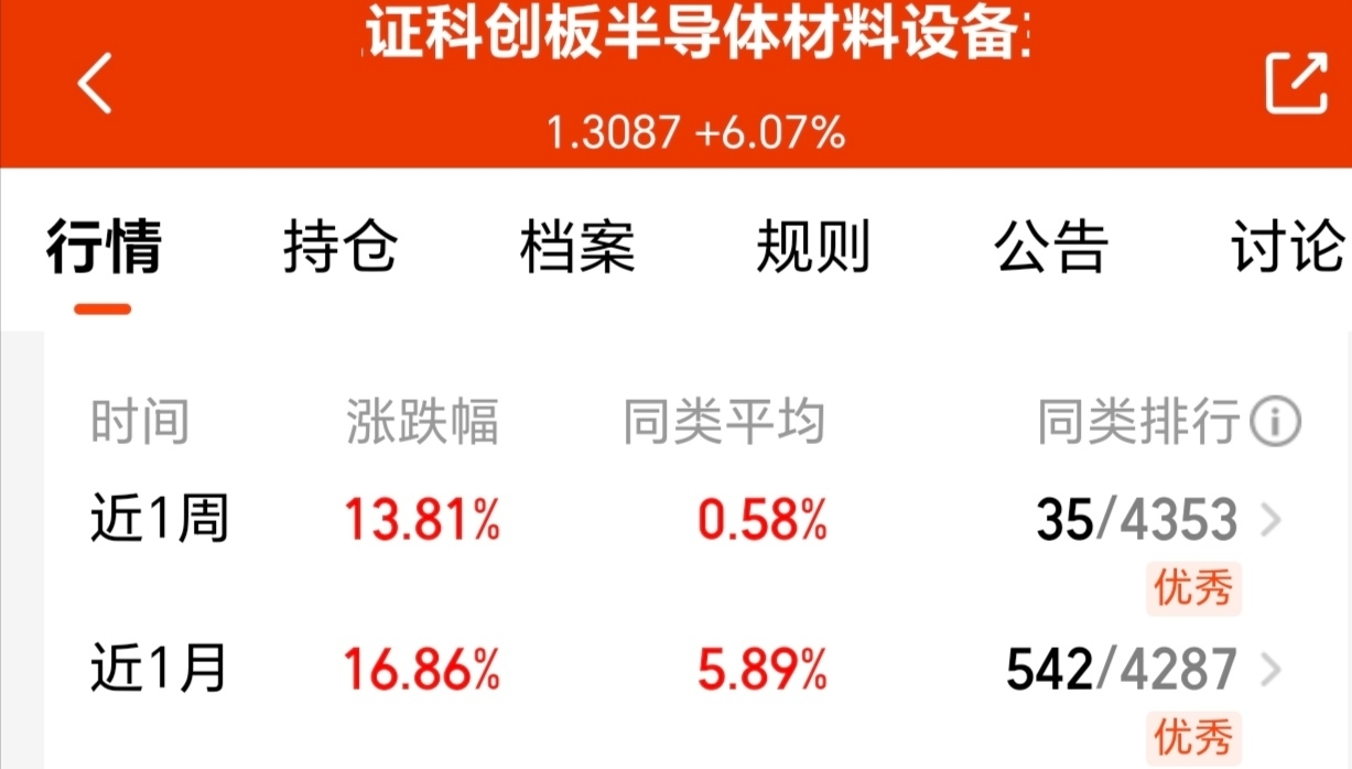 $华泰柏瑞上证科创板半导体材料设备主题ETF发起式联接C$ 这波走势太凌厉了,日收益6.07%,周收益13.81%,完美体现了半导体设备板块的爆发力!