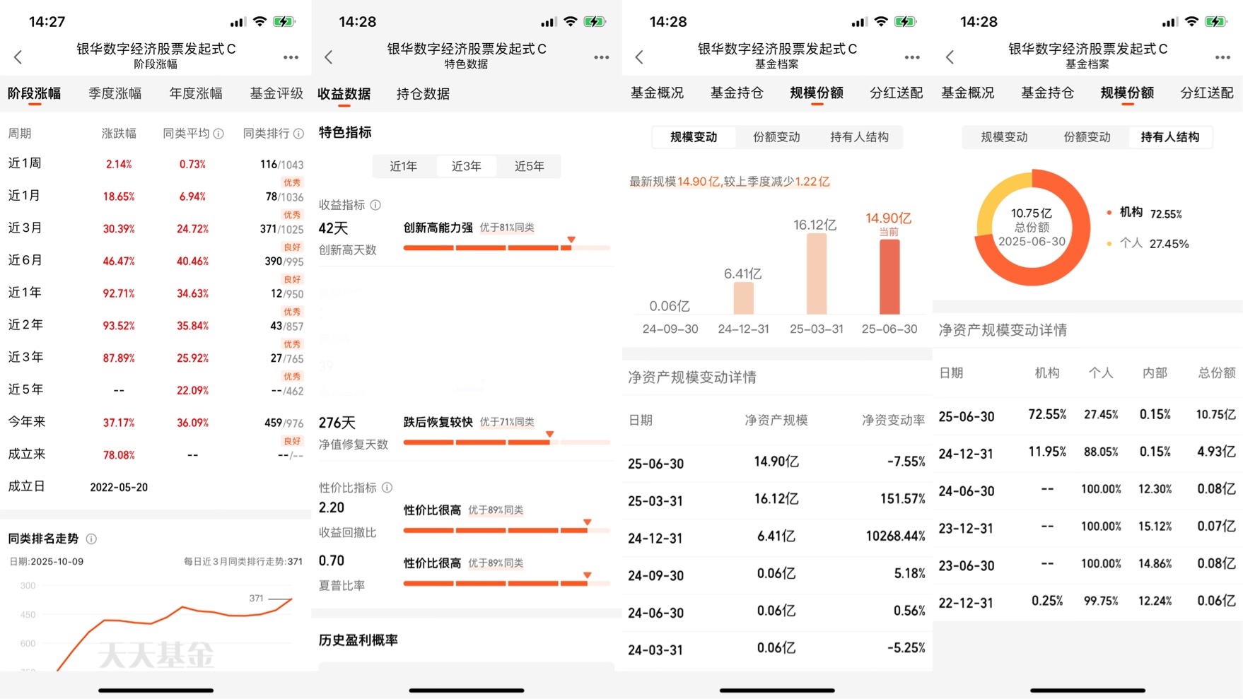 有人可能会问,这么高的收益,是不是因为基金规模小才容易“拔尖”?其实它现在规模14.9亿,不算小也不算大,属于“船小好调头”的黄金规模。而且机构持有比例高达72.55%,机构投资者通常比散户更专业,他们用真金白银投票,说明对这只基金的认可度很高。