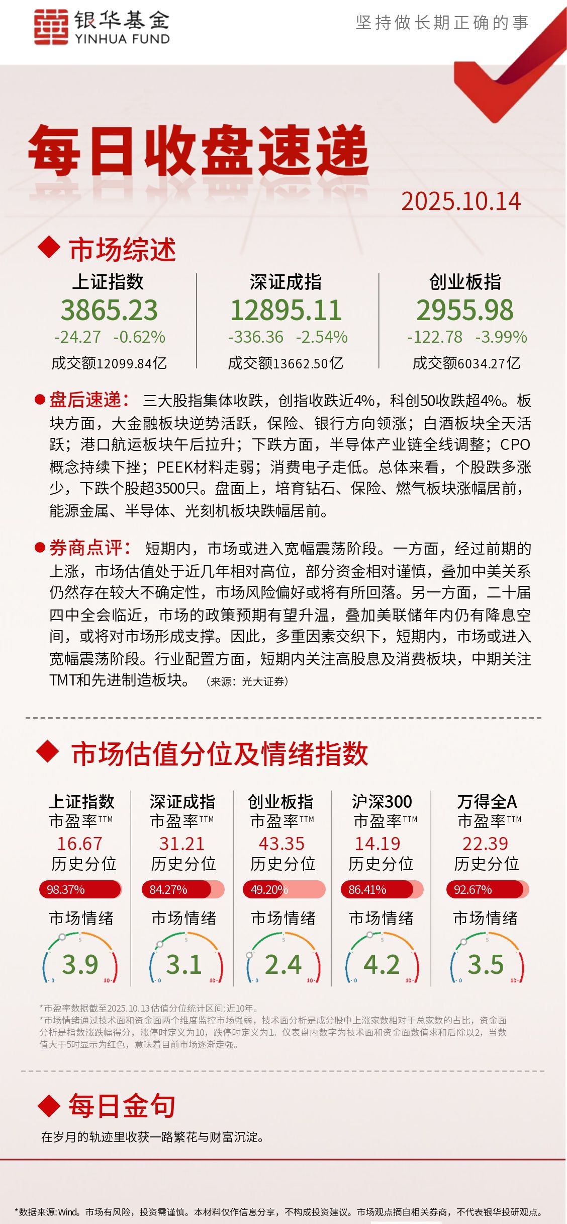 每日收盘速递 | 2025.10.14 三大股指集体收跌,创指收跌近4%