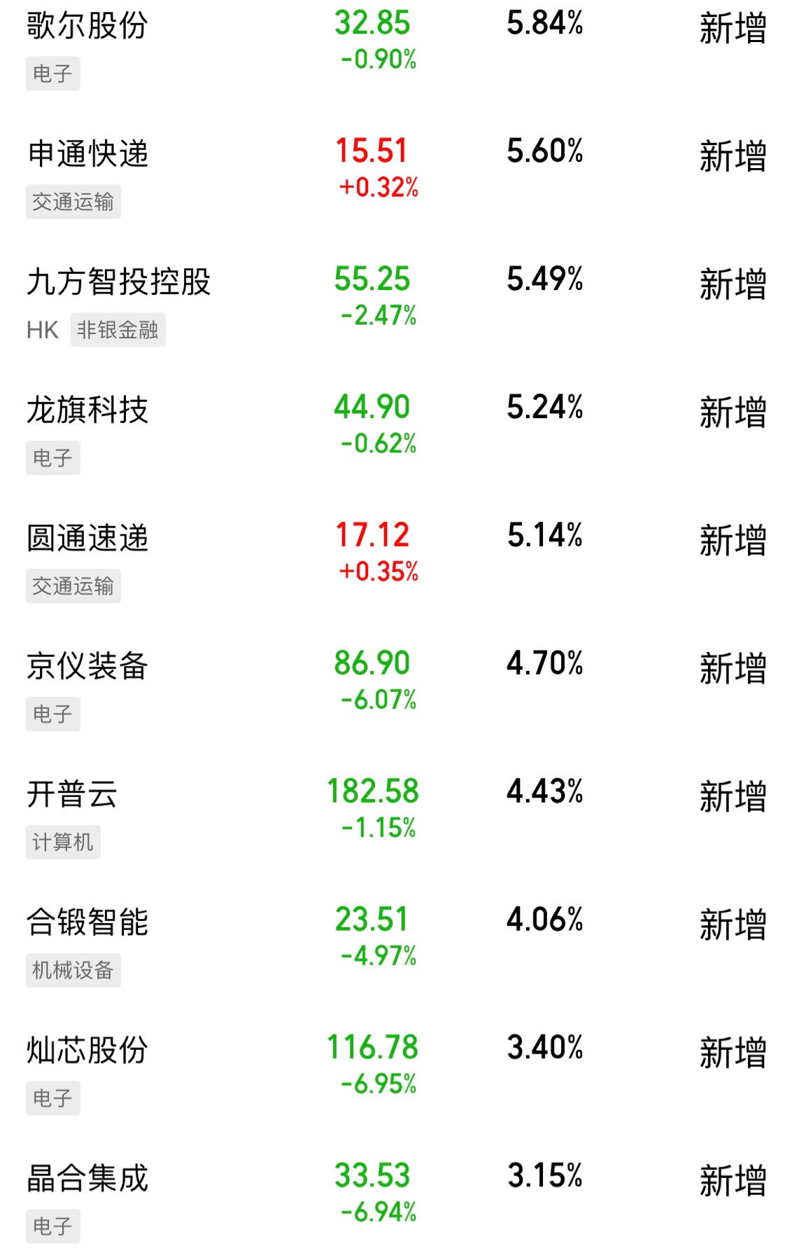 看看它最新的三季度前十大重仓股披露,包括歌尔股份(消费电子龙头)、申通快递(快递运输)、九方智投(智能金融)、龙旗科技(穿戴设备)、圆通速递(快递运输)、京仪装备(半导体设备)、开普云(数字内容管理与服务)、合锻智能(高端装备制造)、灿芯股份(芯片设计)、晶合集成(集成电路制造)。前十持仓集中度在47.05%。可以说这个投资组合涵盖了从硬件制造到软件服务的多个方面,具有较强的综合性和互补性。说白了,它试图用一种相对均衡的方式,帮我们普通投资者“一键布局”整个人工智能板块的核心环节,避免把鸡蛋都放在一个篮子里,分散风险。