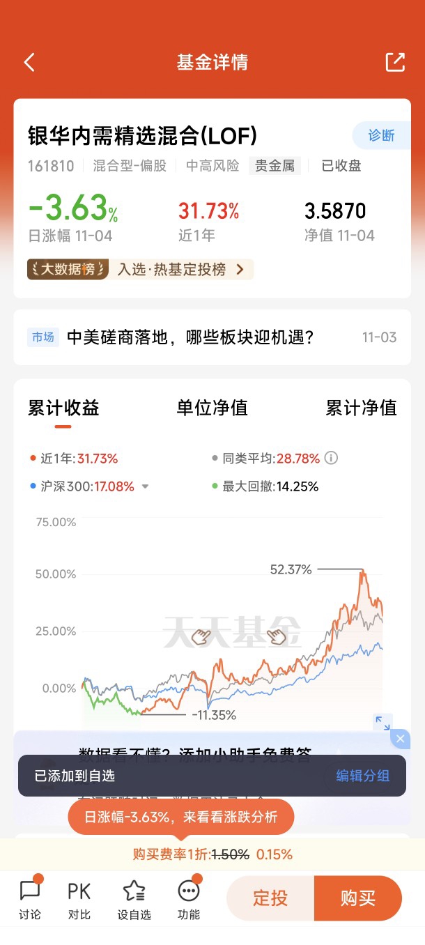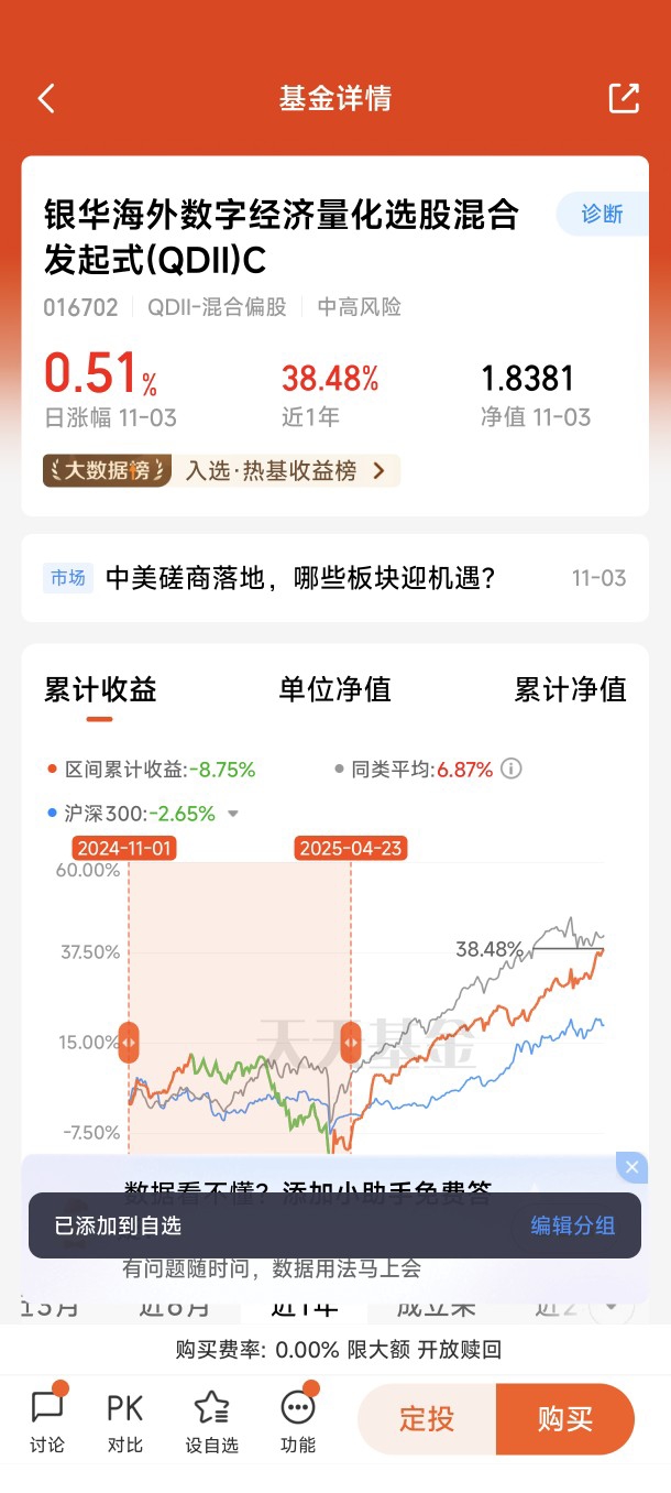 需注意的是,基金年化波动率达25%,属于较高风险品种,适合能承受短期波动、投资周期超1年的投资者。持仓中可搭配低估值金融股或消费基金,形成“成长+防御”的组合结构。