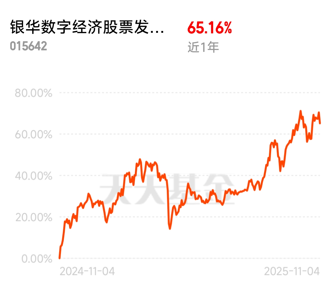 业绩层面,基金展现出极强的赛道把握能力:2024年收益率达50%,在867只同类基金中登顶;截至2025年10月,近一年收益率约70.75%,成立以来年化回报率超13%。短期虽受市场波动影响,近1个月净值微跌1.45%,但近3个月22.11%的涨幅仍凸显成长弹性。