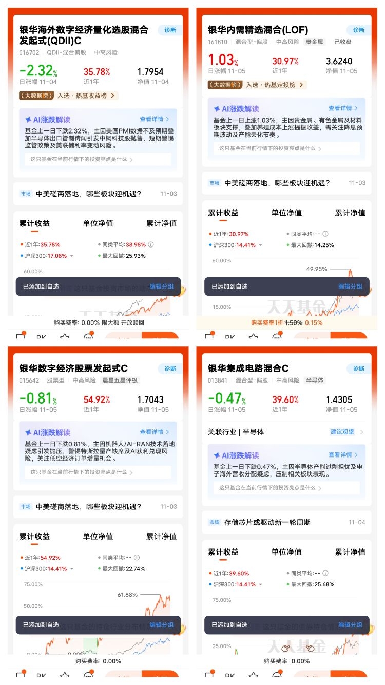 基金的业绩表现与风控体系彰显投资实力。截至2025年11月,基金最新净值为1.7954,近一年收益率达25.36%,显著跑赢业绩比较基准中的中证香港美国上市中美科技指数表现 。从波动控制来看,基金近一年波动率为24.69%,在同类QDII基金中处于合理区间,展现出量化策略对风险的把控能力。基金经理团队兼具金融工程与海外市场研究背景,2009年起便深耕银华基金投研体系,通过持续优化量化模型,精准捕捉算力扩张、AI应用落地等产业趋势。此外,银华基金完善的投研支持与花旗银行的境外托管服务,进一步保障了基金运作的专业性与安全性 。