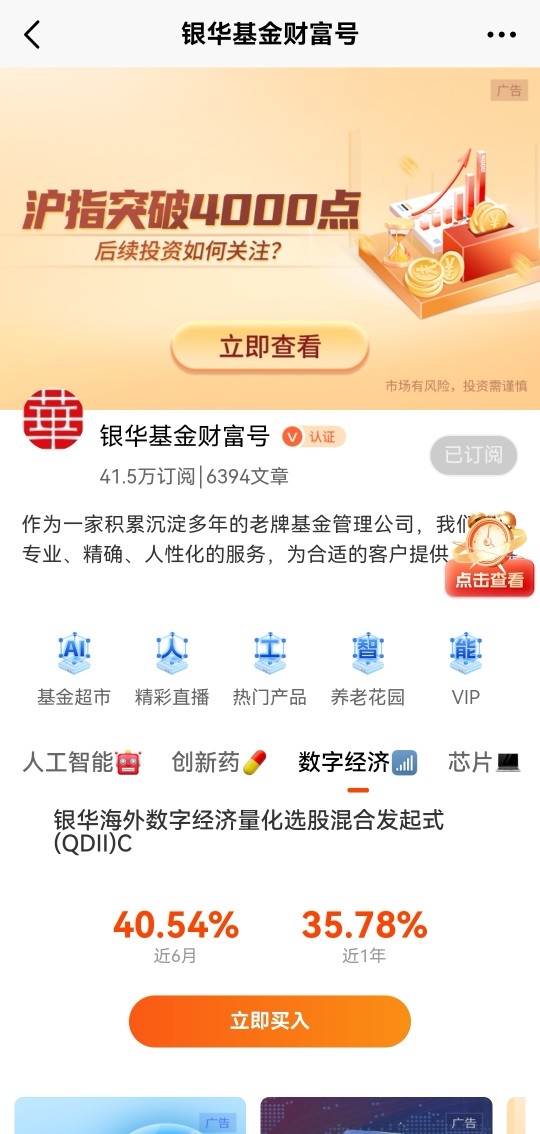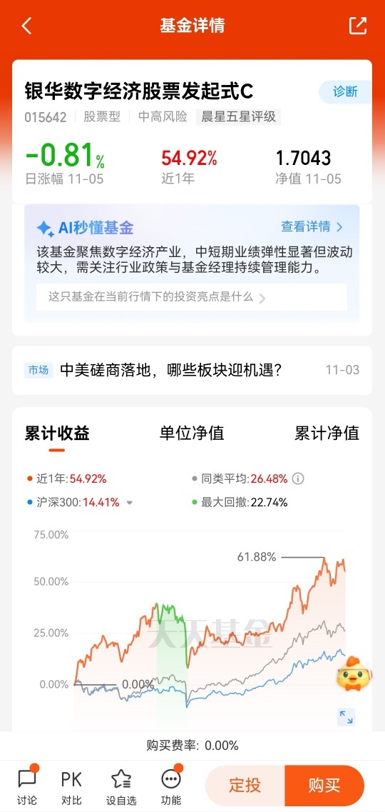 那么对于我们投资者而言,近年来国家重点发展数字经济,发展新质生产力,产业发展是有周期行为的,因此,当市场进入回调阶段,或可成为我们布局的良机,$银华数字经济股票发起式C$ 坐标人工智能技术突破,以数字经济为核心引领,近一年来的表现也是不错的,能够很好地跟上AI热点,当下一次AI技术迎来重要迭代节点时,势必会带来新一轮发展机遇,产业突破进行时,波动回调可低吸~@银华基金