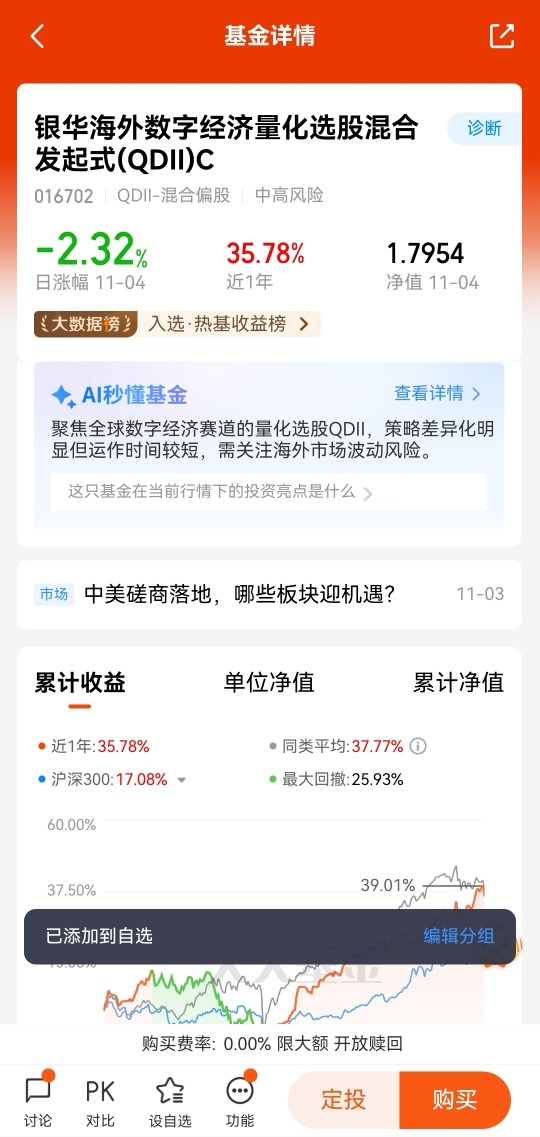 $银华海外数字经济量化选股混合发起式(QDII)C$