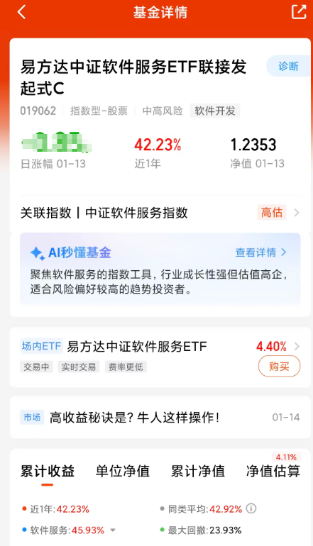 AI再聪明也得有地方跑、有工具用。易方达中证软件服务ETF联接发起式C(019062)聚焦的是AI时代的的生产力底座,虽不直接面向消费者,却是所有AI应用得以运行的幕后英雄。