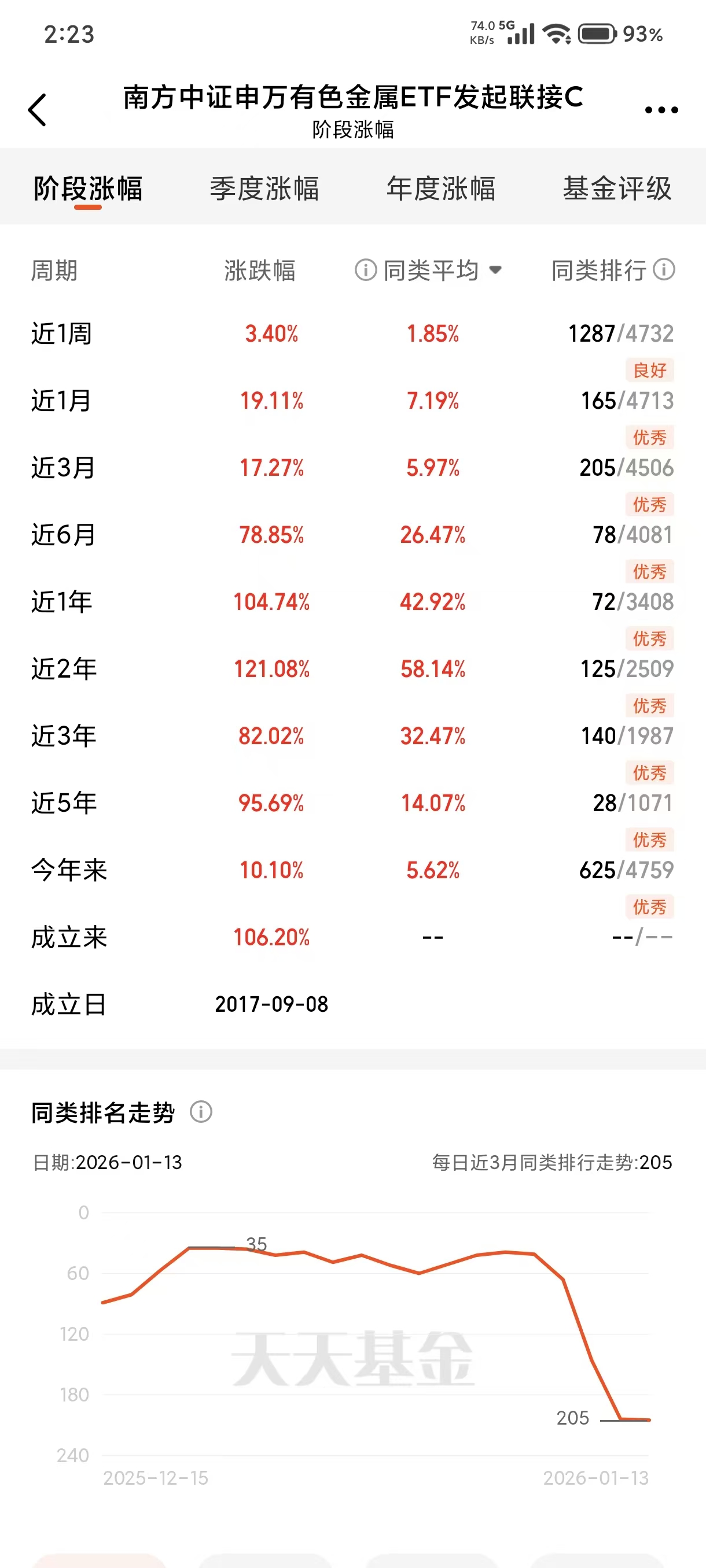 前十大重仓股包括江西铜业、紫金矿业、天齐锂业、赣锋锂业、华友钴业、中国铝业、山东黄金、西部矿业、中金黄金、洛阳钼业等。这只基金近一年涨幅104%,远超同类平均,后续我会持续加厚仓位,长期看好有色金属的行情以及这只基金的表现。