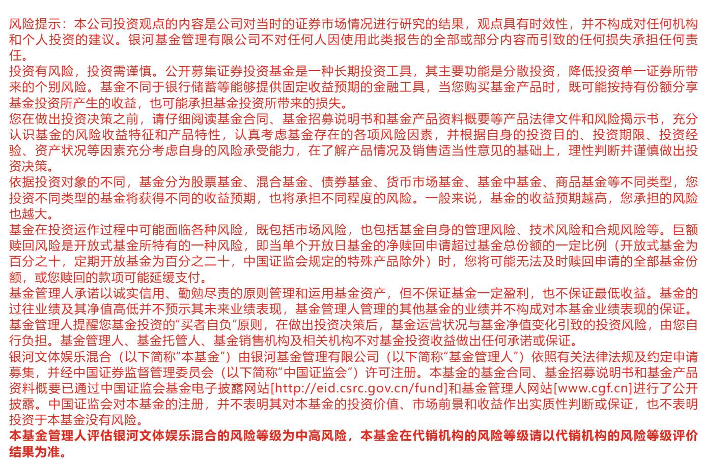 #白银一度跌超8% 贵金属巨震是何信号?##4200点久攻不下 盘整十日何去何从?##多重利好引爆白酒股!行情能否持续?#$银河文体娱乐混合A(OTCFUND|005585)$$银河文体娱乐混合C(OTCFUND|015667)$$银河创新成长混合C(OTCFUND|014143)$$银河创新成长混合A(OTCFUND|519674)$$银河智联混合C(OTCFUND|017761)$$银河智联混合A(OTCFUND|519644)$$银河中证通信设备主题指数发起式C(OTCFUND|021989)$$银河中证机器人指数发起式C(OTCFUND|021302)$$银河科技成长混合发起式C(OTCFUND|022705)$$银河核心优势混合C(OTCFUND|016981)$