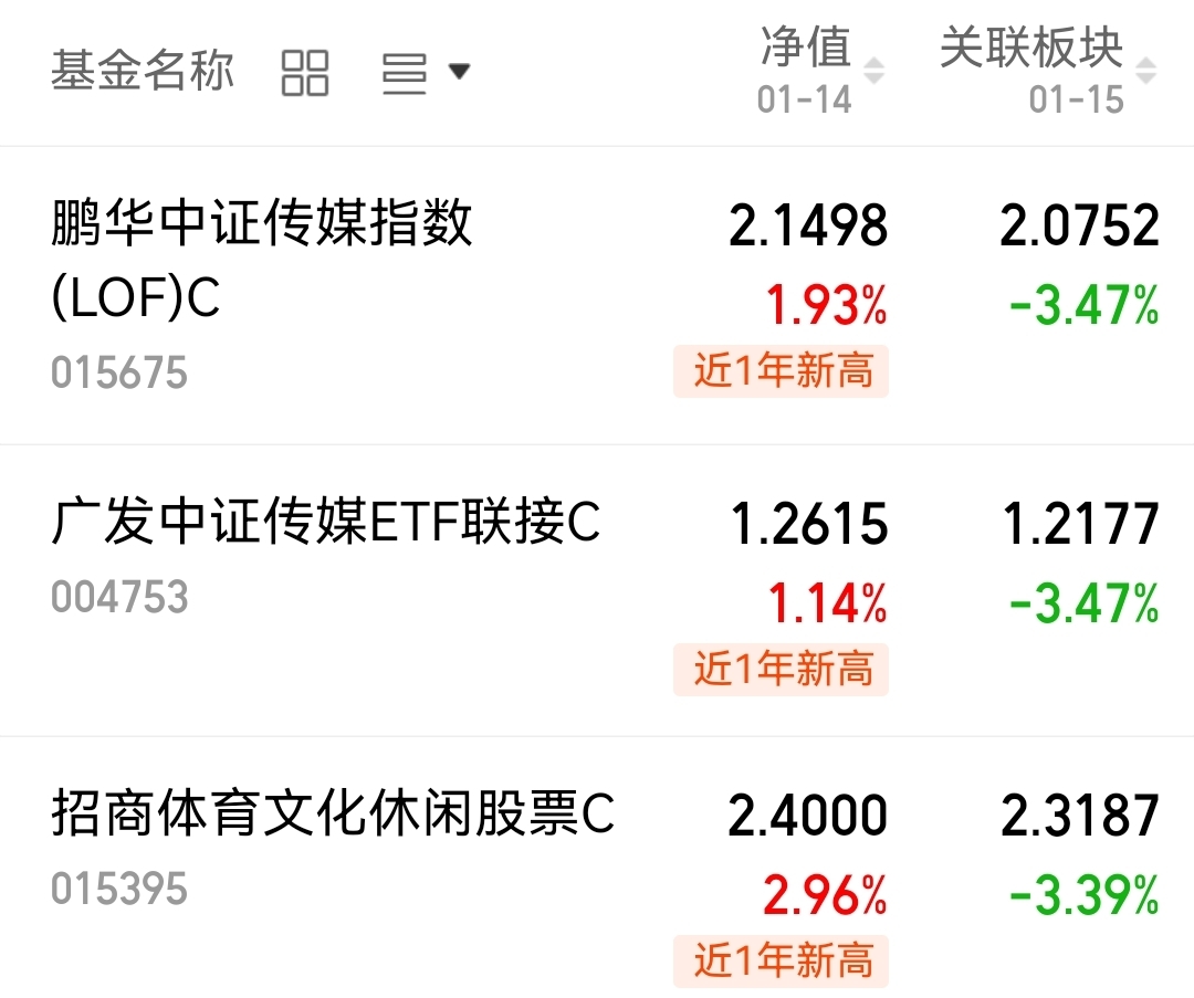 $广发中证传媒ETF联接C$ 昨天涨了1.14%