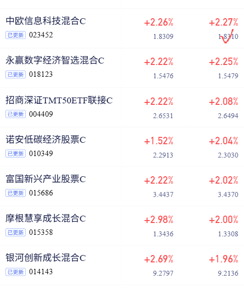 $中欧信息科技混合发起C(OTCFUND|023452)$涨幅2.27%