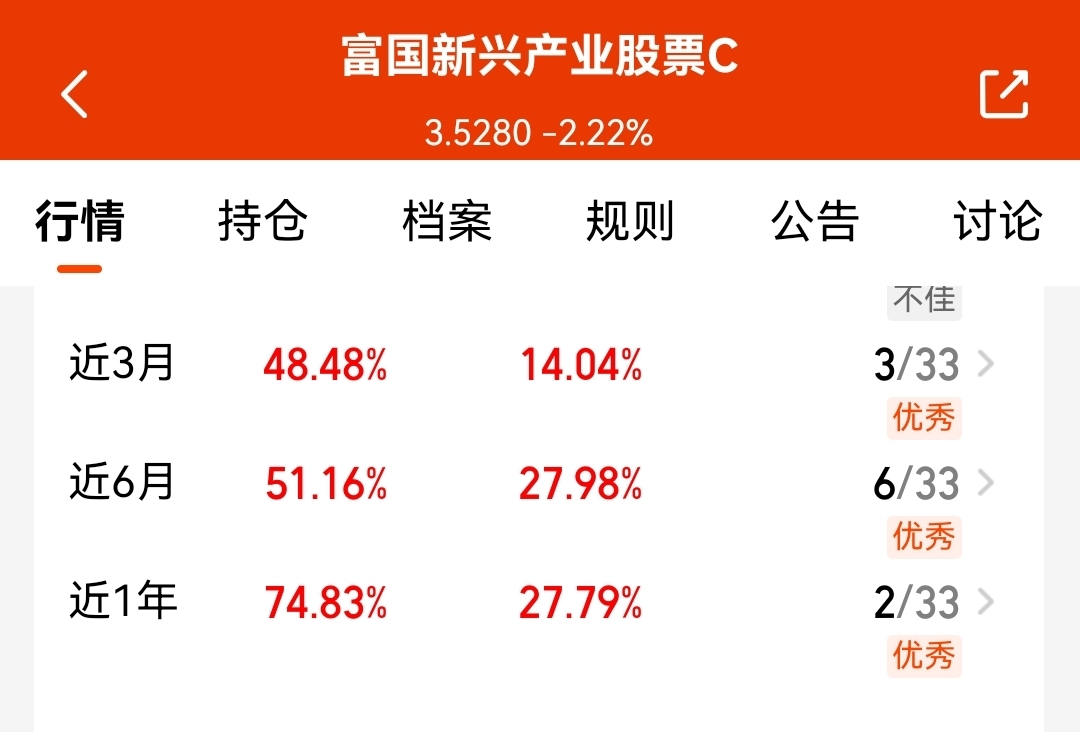 今年科技板块真是主线中的主线,强势得很!今天大盘整体下跌,伙伴们来看看净值情况吧$富国新兴产业股票C$ 近三月上涨48.48%,给力!