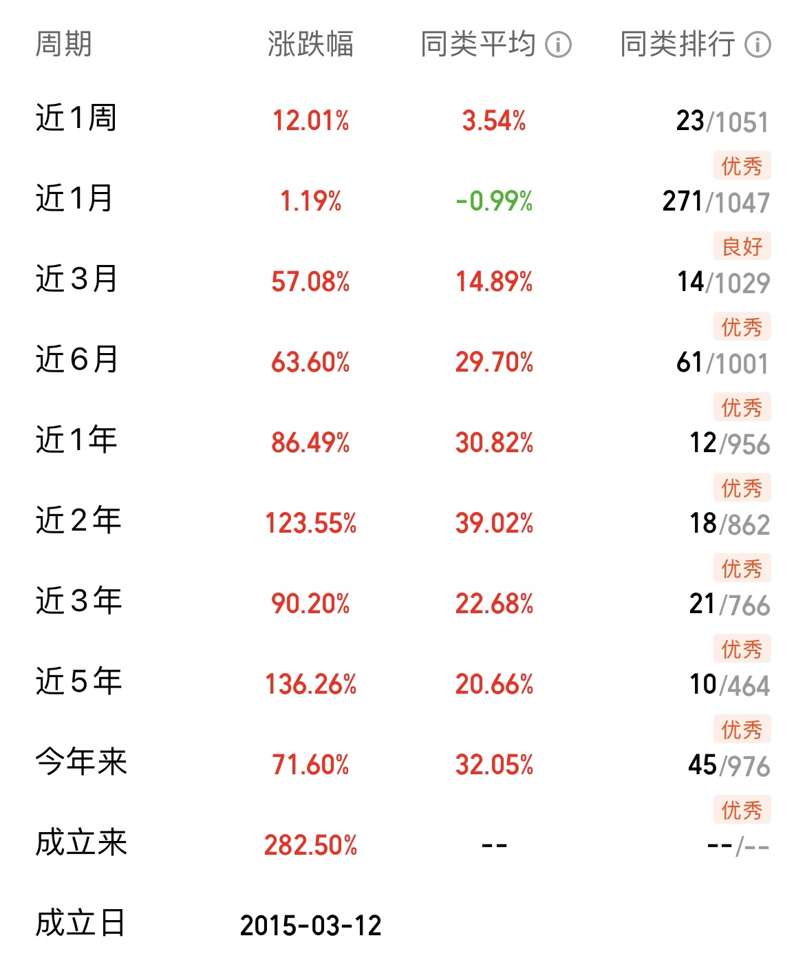 在业绩表现上,它也足够亮眼,用数据说话。作为一只专注于硬科技掘金的主题基金,自2022年2月孙权经理接手以来,其任职收益率高达124.47%!这个成绩单不仅大幅甩开了同类基金平均14.14%的收益,更是轻松碾压了同期沪深300指数9.63%的涨幅,这进一步证明了孙权经理挖掘科技行业机会的能力确实有两把刷子。拉长时间看,无论是近两年123.55%、近一年86.49%,还是近六个月63.60%的收益率,都稳稳地跑赢了同类基金和沪深300指数,业绩排名都属于【优秀】档位。 这确实是一只非常优秀的、专注于科技赛道的主题基金。