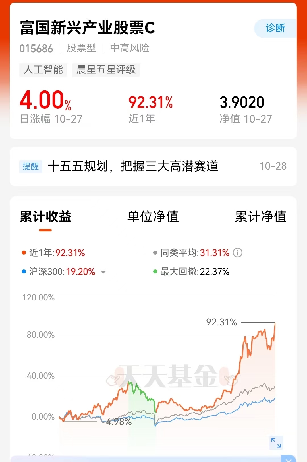 最近科技主线真给力!我拿的$富国新兴产业股票C$,重仓寒武纪、中芯这些硬核公司,