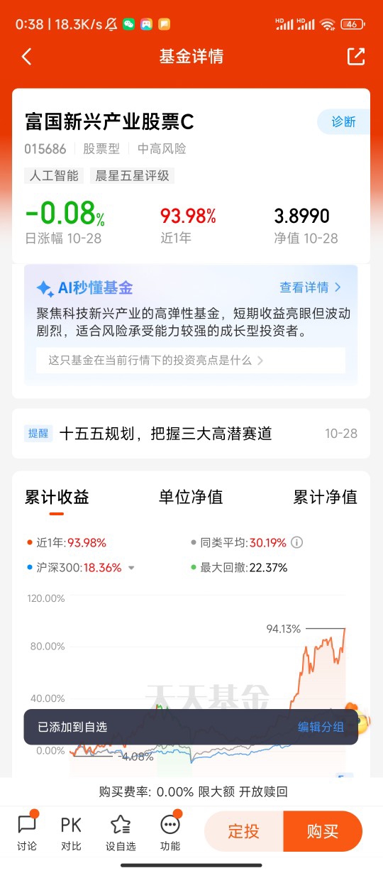 2025年10月,全球科技产业变革的浪潮汹涌澎湃,AI应用从技术探索迈向大规模商业化落地,成为驱动经济增长的核心动力。在A股市场,以AI为核心的新兴产业赛道展现出强大的生命力与投资潜力,富国新兴产业股票C(015686)凭借精准的前瞻布局,近一年净值涨幅达83.54%,近三个月涨幅超35%,为投资者开辟了一条分享科技红利的优质通道。本文将从产业趋势洞察、投资策略构建、后市发展展望三个层面,深度剖析10月AI应用赛道的投资机遇。