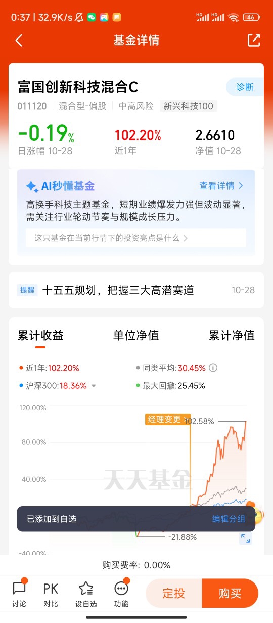 • 核心仓位(60%):配置富国新兴产业股票C,分享AI产业整体增长红利;